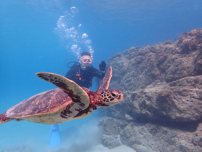 奄美ウミガメ体験ダイビング ウミガメ近い~!!