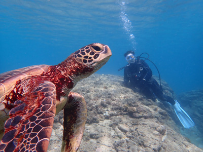 フレンドリーなアオウミガメが僕らを迎えてくれました☆