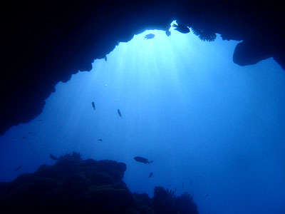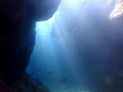 少し深く潜れば、地形や魚のシルエット♪