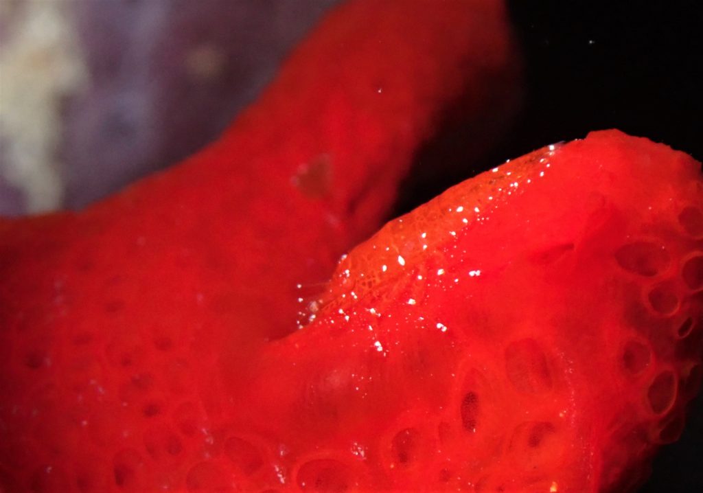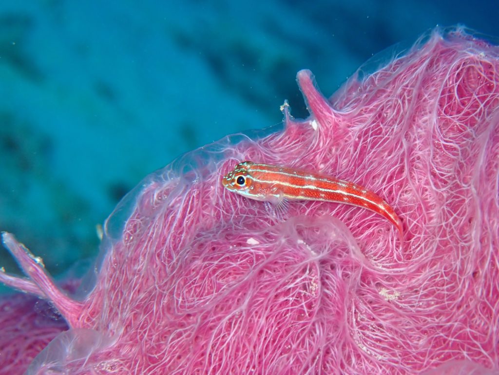 紫色の海綿にちょこんと乗ったタテジマヘビギンポもいい塩梅☆
