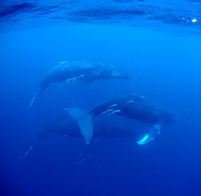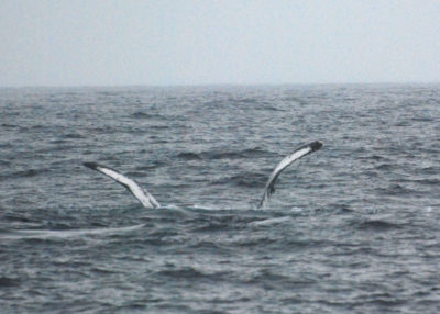 1頭はフラれちゃったのか?急速に北上を開始して、まだ近くでまったりしていた2頭は船の近くに上がってきてくれ、ゲストさんの下でグルグル様子を見るように回ってくれたそうです♪