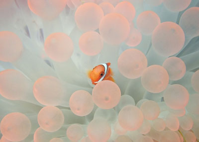 まだもう少しピンクを楽しめそうな白化したイソギンチャクとハマクマBABY