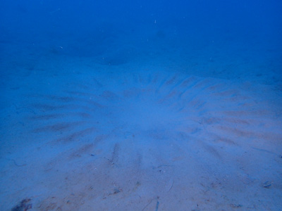 でも一昨日フグがサークルの維持をしているのか確認するために真ん中に置いた貝殻は綺麗になくなっていました。