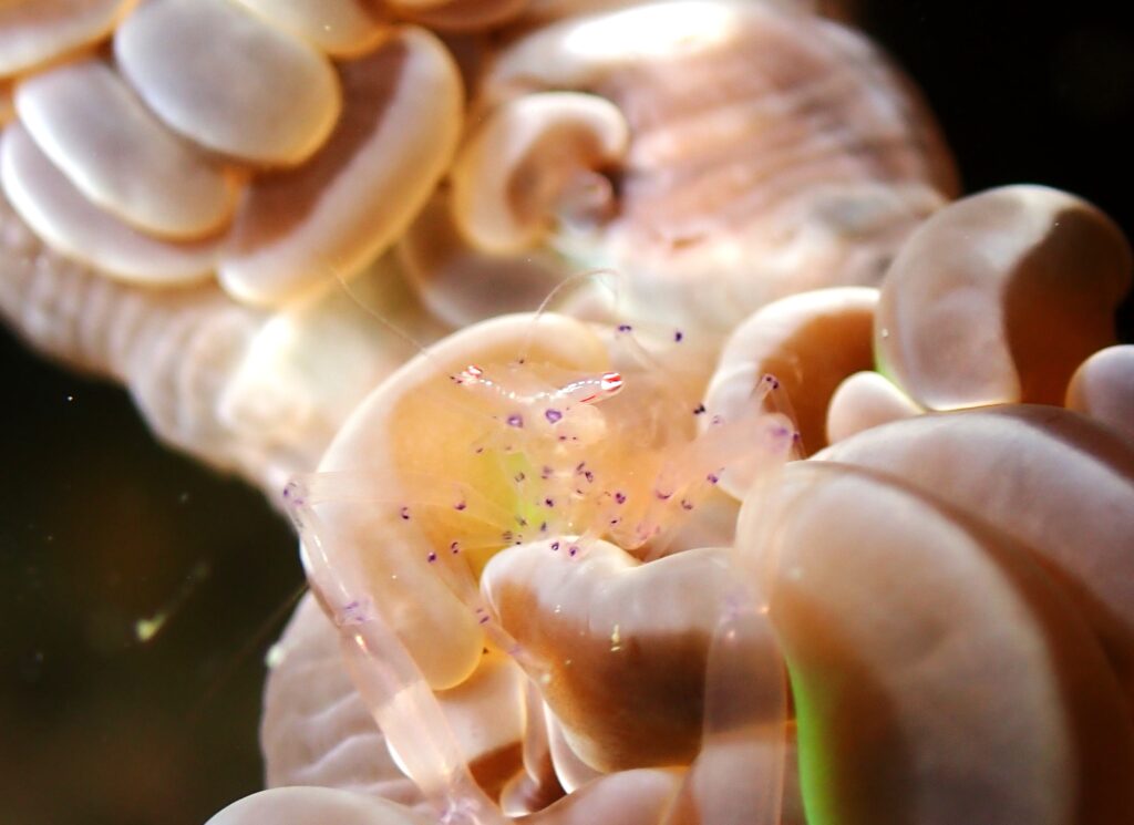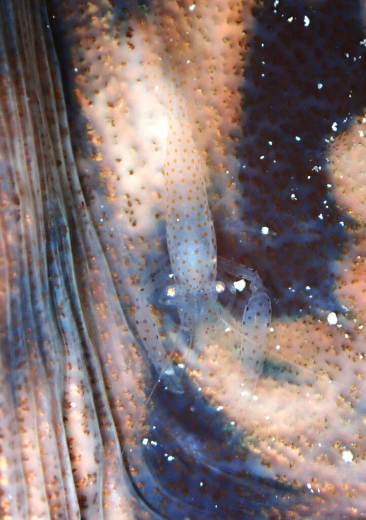 オオヒレシャコガイの中に住んでいるシャコガイカクレエビ!!