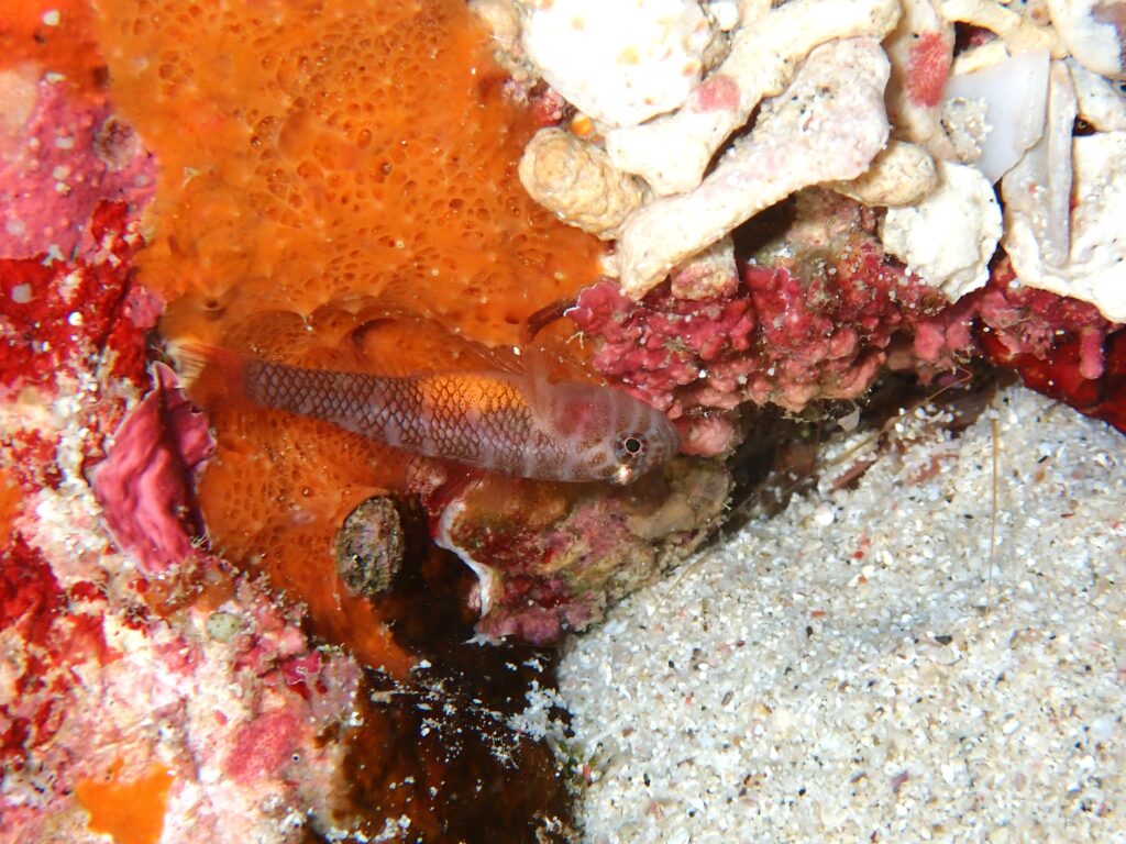 このハゼはお腹にオレンジ色の卵をたっぷり持っているので、卵がスケスケ!!