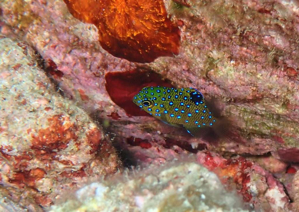 あまりこの時期には見ないのですが、ハゼのヒレに引っ付いてヒレを食べるスミゾメキヌハダウミウシも♪