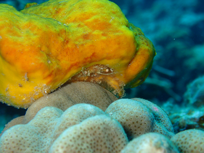 サンゴの隙間から覗いている姿を撮らせてくれました。
