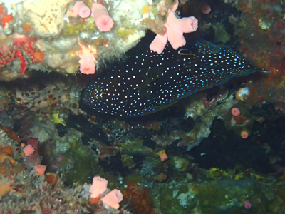 岩の隙間には変わった形をしたシモフリタナバタウオ!!