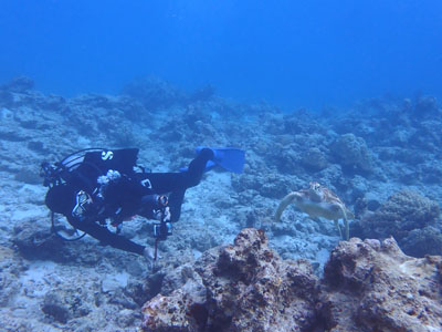 かわりに可愛らしい小さなアオウミガメに出会えました♪