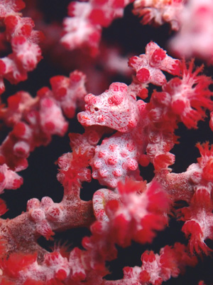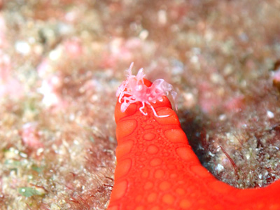 白化しかけた色の少し抜けたサンゴに居着いてくれているヒメイソギンチャクエビ!!