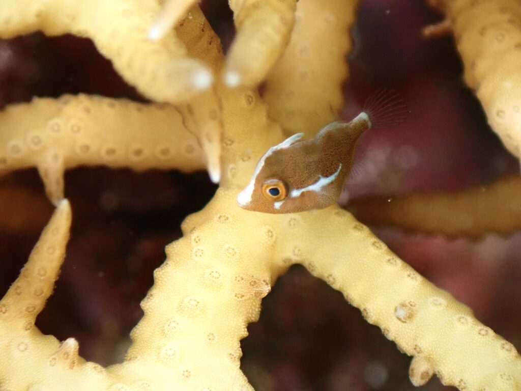 タテジマカワハギの幼魚はまだ居着いてくれていました。