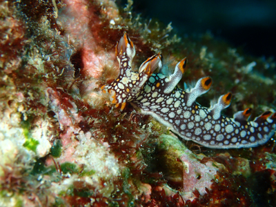 つぶらな瞳でこちらを見るヒオドシユビウミウシも♪