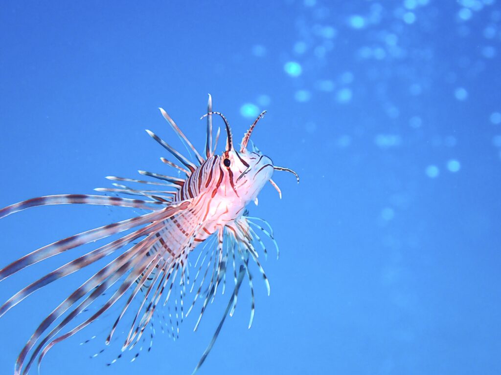 中層の泡をバックにハナミノカサゴの泳ぐ姿を🎵