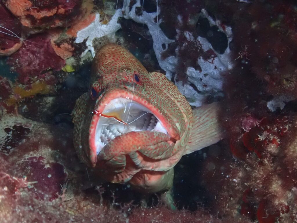 アザハタがボスとして住むこの根では、ボスのクリーニングをするアカシマシラヒゲエビもたくさんいてくれます☆