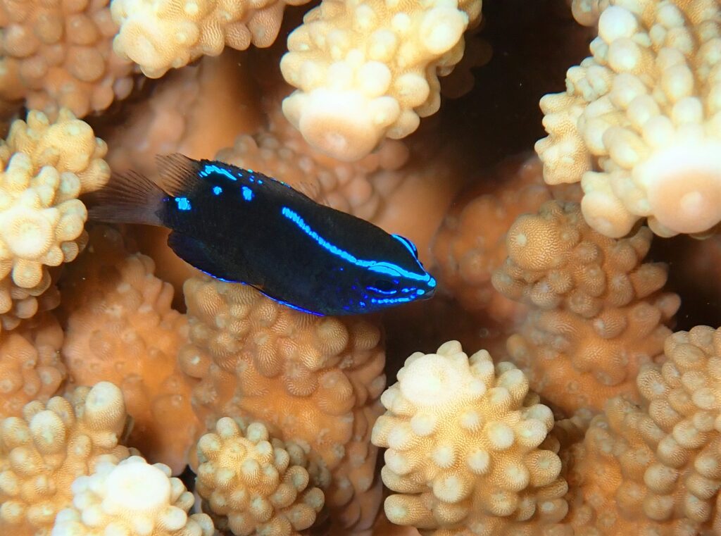 アツクチスズメダイの幼魚たちもサンゴポイントでは見られます♪