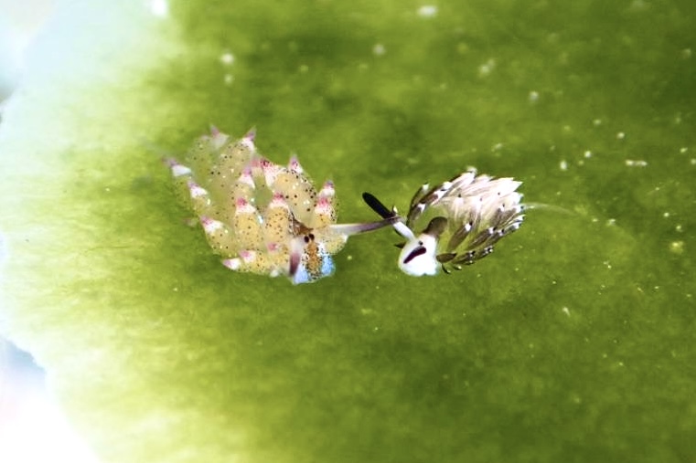 リピーターゲストさんが撮ってくれたクサイロモウミウシとウサギモウミウシのラブラブシーン!!
