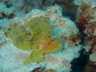 濃い目の緑色だったハダカハオコゼは綺麗な黄緑色に変身していました。