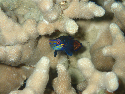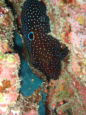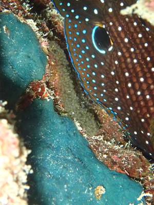 大仏サンゴの隙間にこのところよくいてくれるシモフリタナバタウオ!!