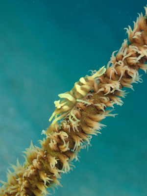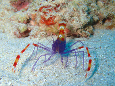 ムチカラマツエビとそっくりですが、背中に角のようなものが