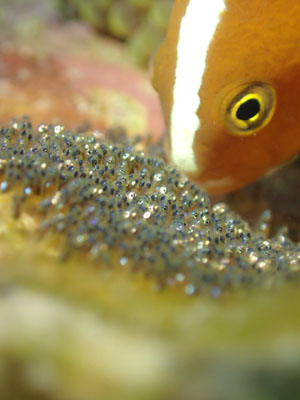 この前までハッチアウト寸前の卵のお世話をしていたセジロクマノミ!!