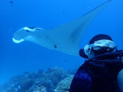 じっとしているとマンタが手の届きそうな頭上を泳ぎ去ったり、間近で急接近してきてくれたり、奄美でもまれにマンタが出てきてくれますが、こういうポイントは羨ましい~!!