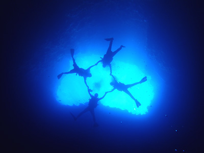ブルーホールではみんなで手を繋いで撮っていただきました!!