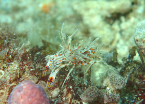 ガレ場で見つけた片腕のフリソデエビ!!