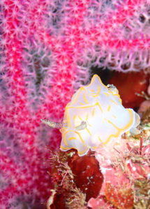 下の方に付いた赤の斑点がベッコウヒカリウミウシにはないと思うんですけどね・・・・。