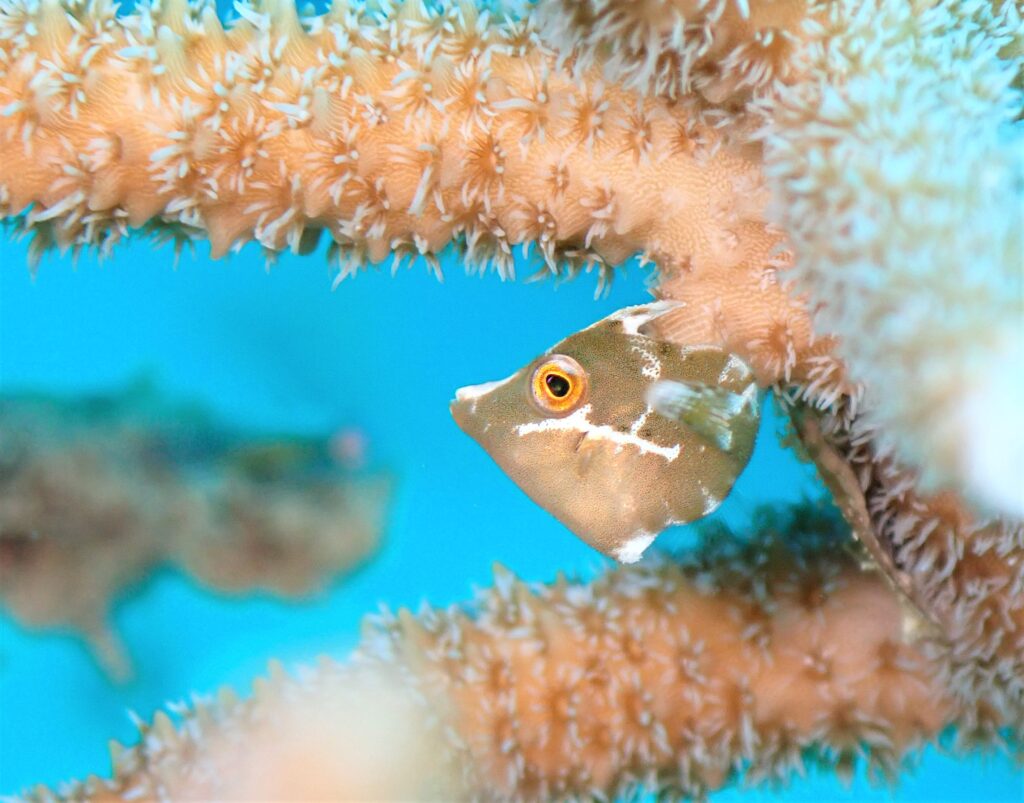 昨日の生物たちも織り交ぜつつ、タテジマカワハギの幼魚もゲットです。
