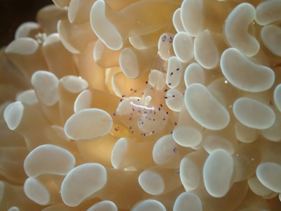 足に紫の斑点が入ったイソカクレエビ属の一種!!