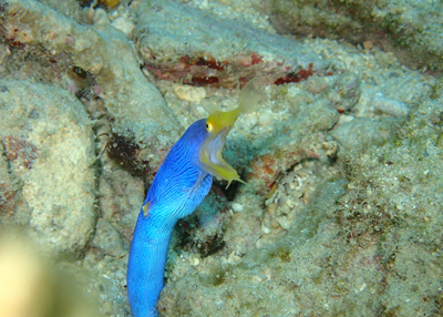5mの水深にいるハナヒゲウツボはいつもの定位置で居てくれました。