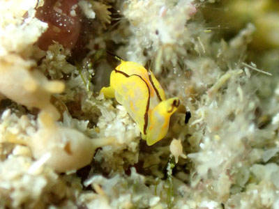 一見オレンジウミコチョウに似てますが、真っ黄色の部分にオレンジが入り模様があるのです。