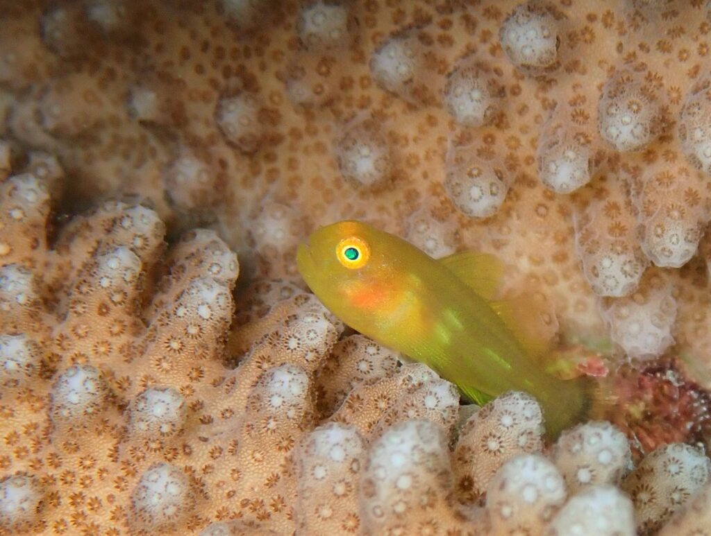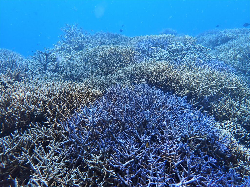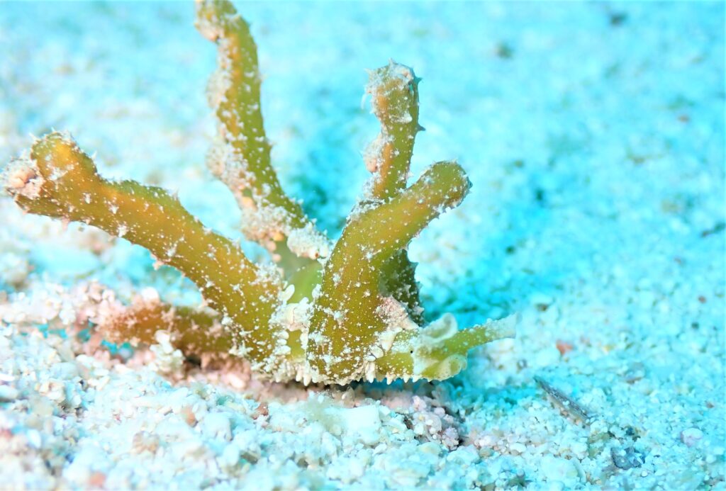 エダサンゴが綺麗に群生したこのポイントにはリュウキュウイソバナが一つあるんです。