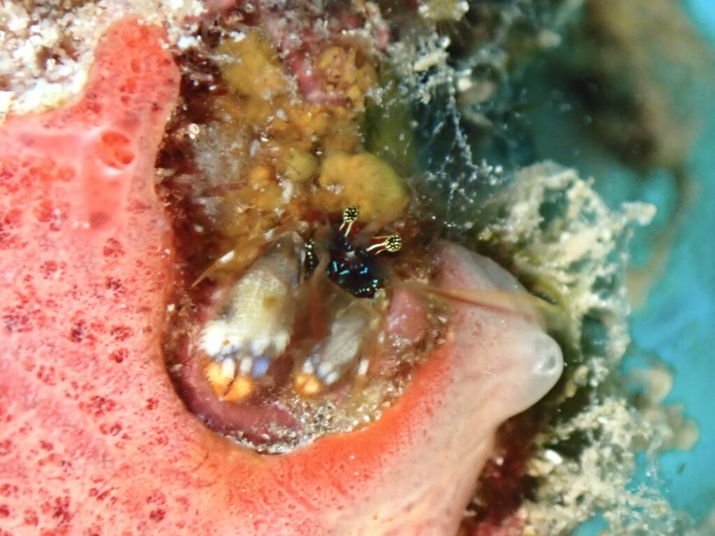 朱色の海綿にお住いのニシキカンザシヤドカリ!!