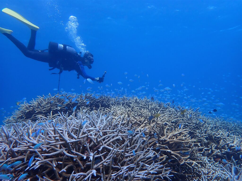 水温上昇でサンゴがうっすら色が抜けてきました・・・・。