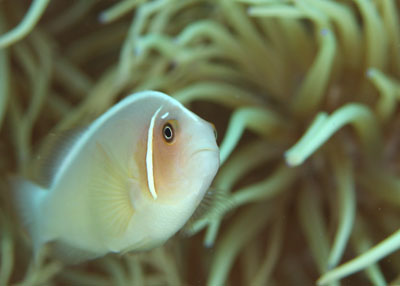 最近引っ越したようで近くのイソギンチャクに新たな家族とともにいらっしゃいました。