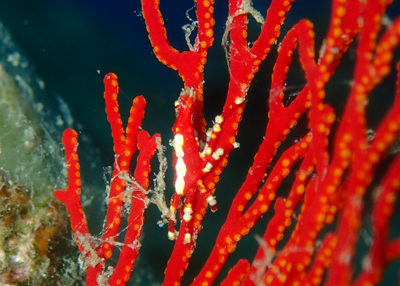 小さなイソバナにはこれまた小さな綺麗な色のイソバナガニ!!