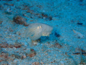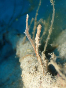 僕らにバレたと思うとゆっくりつかまっている海藻の裏に姿を隠すところが可愛いところですね。
