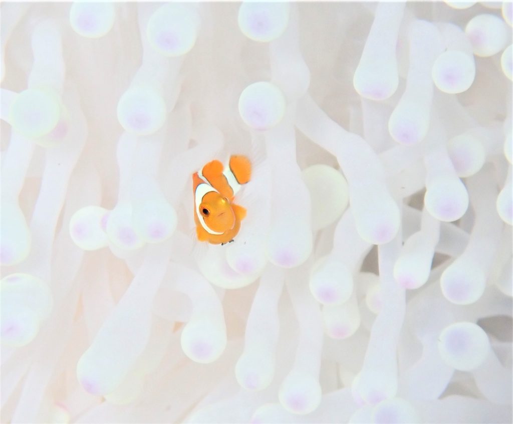 白くきれいなイソギンチャクにもう一匹の相棒と一緒にいてくれます。