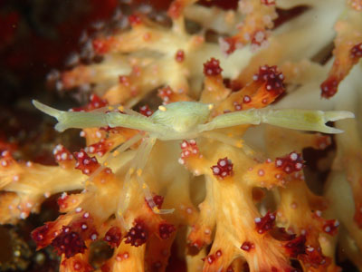 節々と目が蛍光色のオレンジ色になって可愛らしいアシボソベニサンゴガニ!!