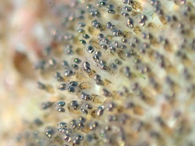ナミスズメダイの子供たちは小さな卵の中ですくすくと育ってました。