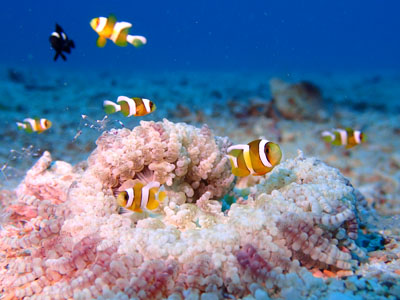 クマノミの幼魚とニセアカホシカクレエビ、オドリカクレエビのシェアハウスです☆