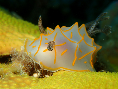 キスジカンテンウミウシも黄色のサンゴが周りを彩ってくれています♪