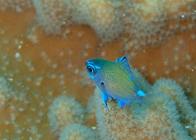 春を告げる青いりりしい眉毛のアマミスズメダイのyg!!