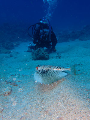 砂地では水中をカイトで飛ぶように大きなヒレを広げたセミホウボウ!!