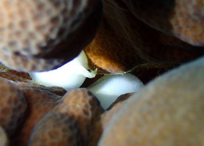 キンチャクガニも赤い小さなイクラのような卵を抱卵している子を