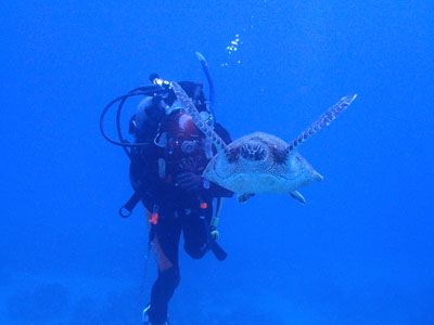 大仏サンゴには最近よく見る小さなアオウミガメがフレンドリー寄ってきてくれます♪