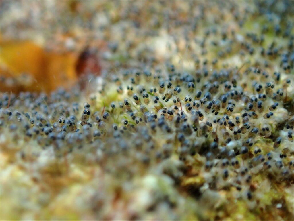 紫色だった卵は黒っぽくなって、よくよく見るとたくさんの発眼卵で埋め尽くされていました。