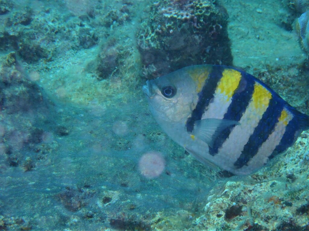 デバスズメダイの子どもたちが群れるこのサンゴは今年はさらに増えてパワーアップしております♪