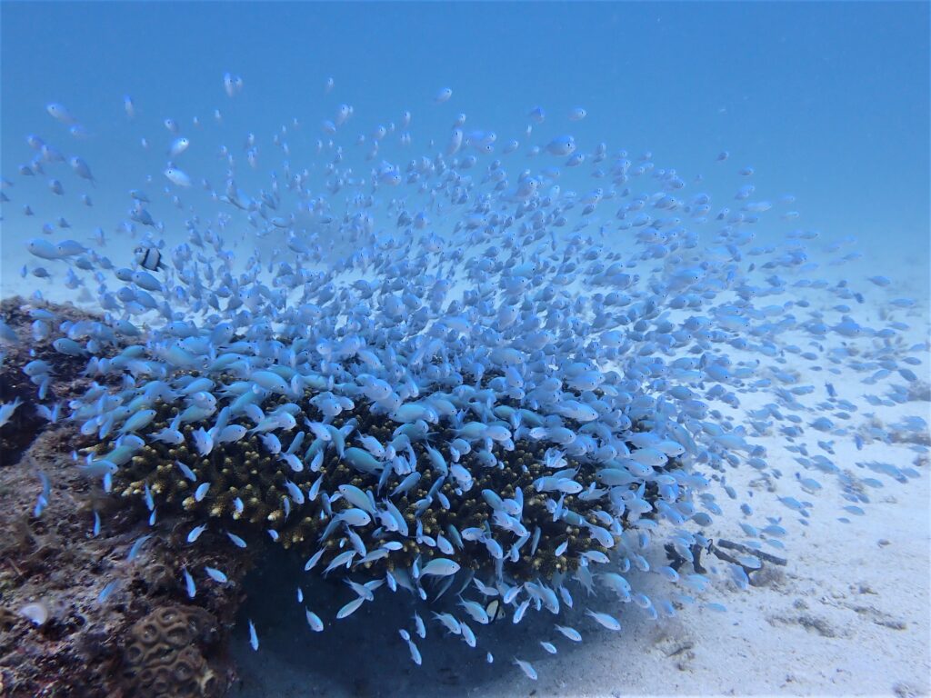 ふわ~っとサンゴから広がる子供たちの群れは夏の海をバッチリ感じさせてくれます☆